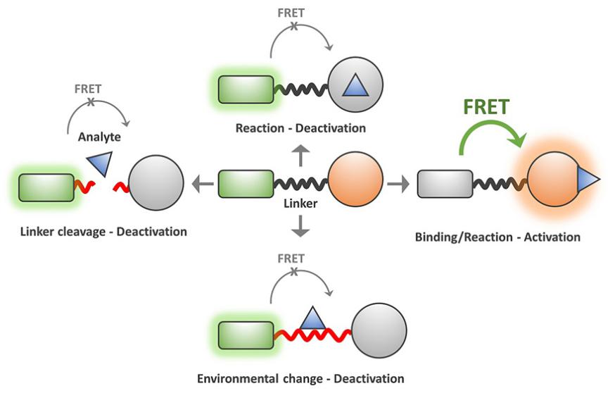 Förster 共振能量转移(Förster resonance energy transfer, FRET)是根据理论物理学家Theodor Förster命名,其在1948年提出了关于从能量供体到受体的电子激发转移效率的方程式。FRET是通过供体-受体之间长程偶极-偶极作用的一种非辐射能量转移过程。在光激发下,电子激发态的供体能量能被转移到基态的受体。当供体和受体都是荧光团时,FRET经常被称作“fluorescence resonance energy transfer”,即荧光共振能量转移。