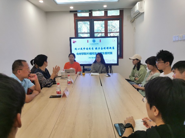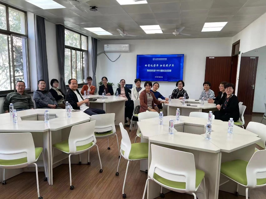 学院也组织校友们开展了“缘聚师大”交流会。化学系89级本科1班、食品化学专业89级本科1班的校友们在徐汇体化楼224C深入交流。学院党委副书记、校友工作负责人臧艳雯老师出席。臧老师代表学院对校友们的到来表示热烈欢迎,介绍了学院的发展情况,对校友们一直以来对学院工作的关心和支持表示感谢,并期盼校友们常回家看看。