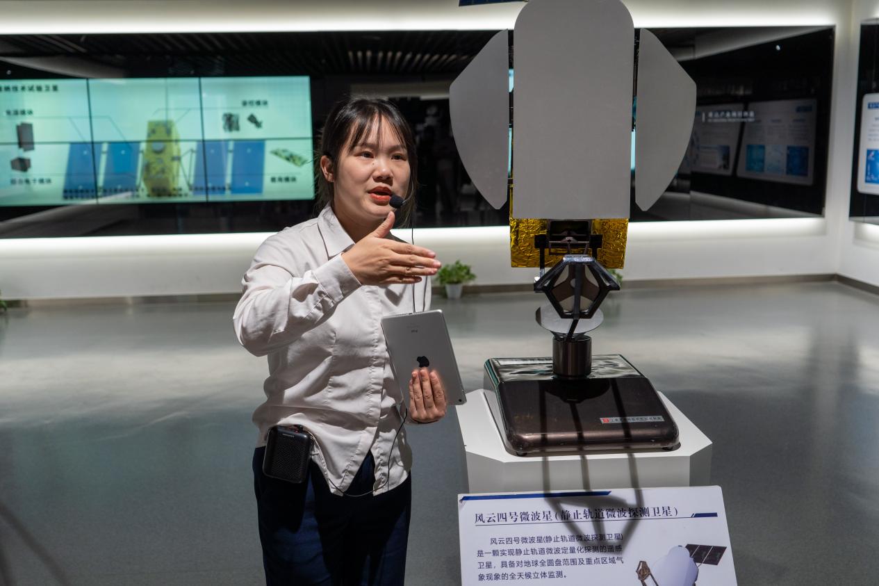活动伊始,在讲解员的带领下,师生们共同参观了航天八院的展示厅。讲解员为大家介绍了八院的基本工作与组成,通过各种生动的卫星、火箭模型甚至是珍贵的原型,比如风云四号微波星、长征系列运载火箭等,让同学们了解到了我国航天航空事业的迅速发展与科技进步。在智慧安防展厅中,讲解员为我们详细介绍了各种军用、民用的反无人机雷达和智能自主消防巡检机器人等,航天航空事业的发展应用不仅仅体现在军事科研方面,在日常生活中也无处不在。科研人员的不懈奋斗,科技事业的不断进步,都在为我们的日常生活保驾护航。在参观介绍中,讲解员也提到了科研工作者日常工作很辛苦,也让我们进一步感悟到了我国航天航空科研工作者淡泊名利、潜心研究的奉献精神。