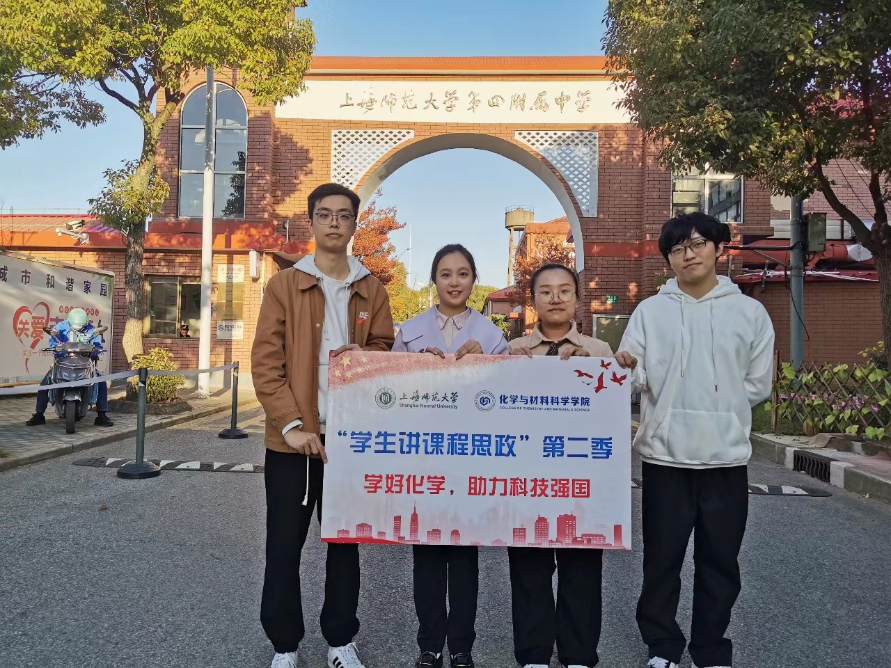 近日,“学生讲课程思政”第二季活动走进上海师范大学附属第四中学的课堂。在与指导老师的反复磨课和精心准备下,李泽宇、周悦、许鹭阳和郑雨晴四位学生讲师为高一、高三的同学们带来了精彩的化学课程思政教学。