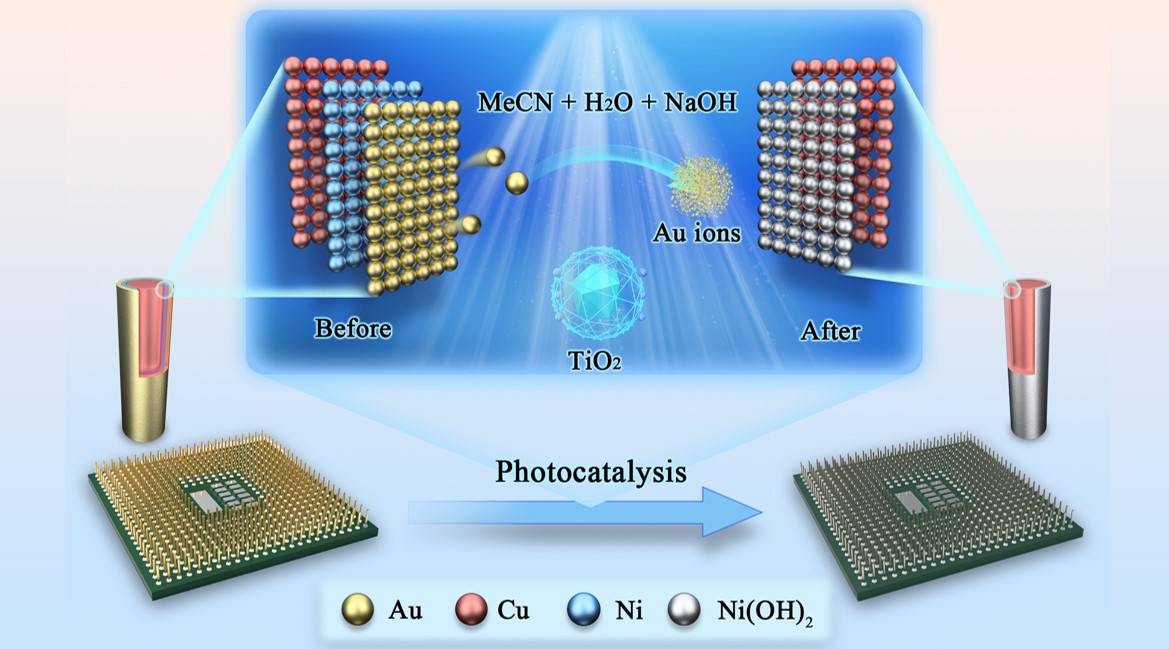 卞振锋教授团队的研究论文《Scalable and selective gold recovery from end-of-life electronics》,针对电子废弃物中多种金属共存的情况,提出了金属表面钝化协同配位的全新策略,利用光催化技术成功实现了电子废弃物中黄金的高效、选择性氧化溶解回收,从根本上避免了贵金属回收过程中重金属离子对水环境的污染。上海师范大学为第一署名单位,商恒军为论文第一作者,卞振锋教授为论文通讯作者。