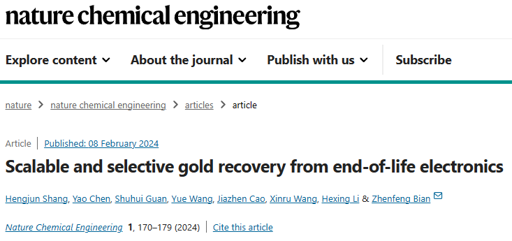 近日,国际权威期刊《Nature Chemical Engineering》在线发表了我校米粒av