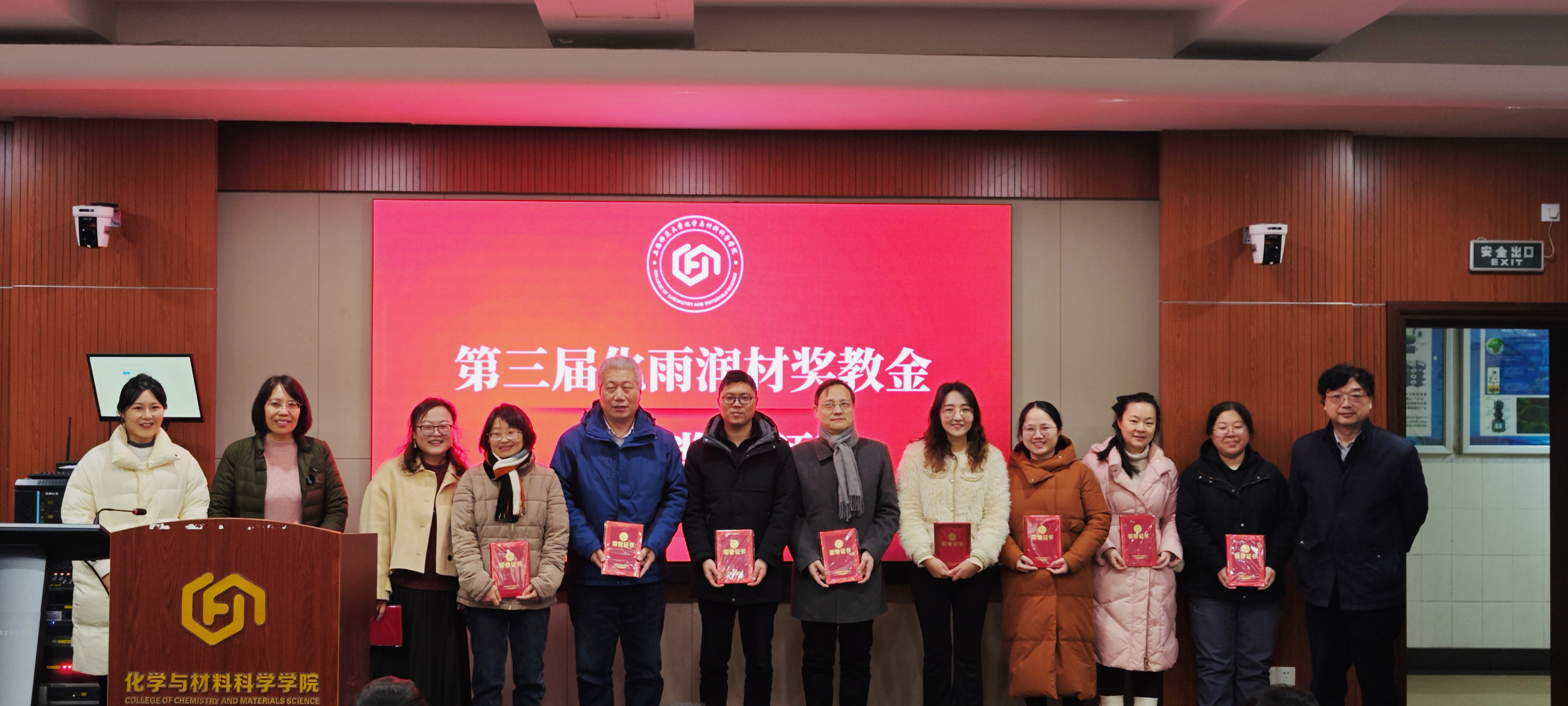 2月23日上午,2023年度“化雨润材”奖教金颁奖仪式在化学实验楼126会议室举行。学院领导班子成员及米粒av 全体教职工出席仪式。学院党委书记盛况主持仪式。