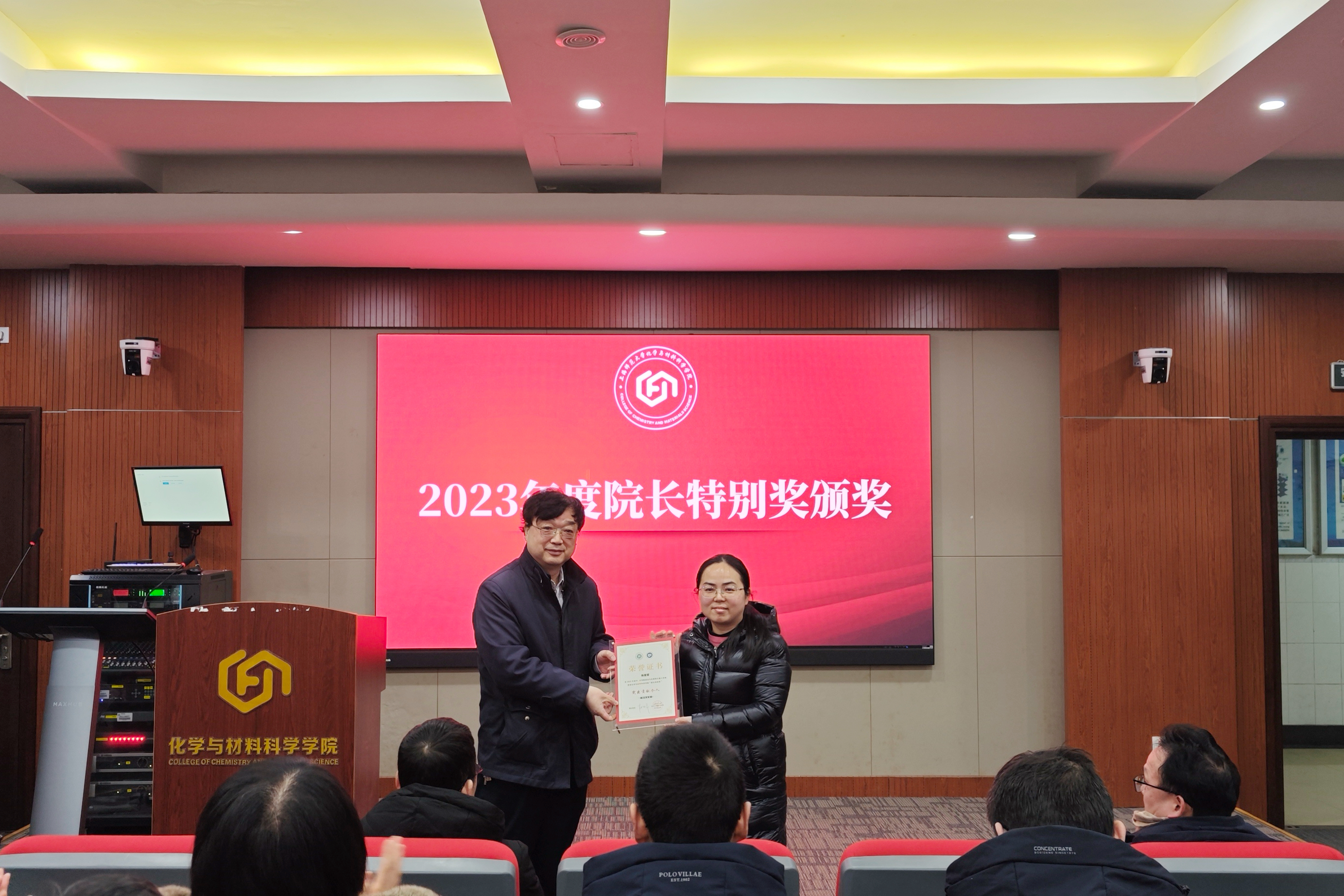 会上,盛况宣读学院表彰决定,陈雯雯老师荣获2023年度“院长特别奖”突出贡献个人奖。