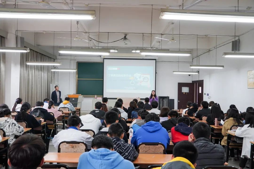 其次,了解就业方向,优化生涯规划。学长有着丰富的就业履历和工作经验,向同学们详细介绍了化学专业的就业方向和具体岗位,并揭秘每个岗位的作业环境、工作内容、所需能力等各方面情况。学长语重心长地说到,“诚实守信”是化学行业特别是分析检测员最基础的品质,每一份检测报告都要对环境、产品负责,为社会负责。