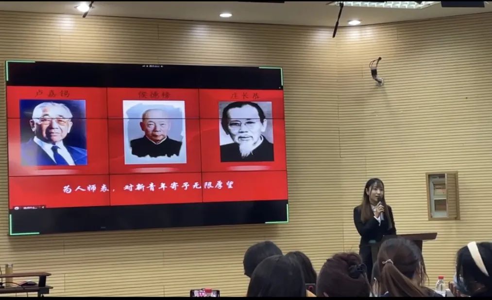 2021级化学(师范)3班团支书聂亦宸围绕我国化学家故事设计微团课和情景剧。她说:“他们的共同之处不仅仅在于都怀着赤忱的报国之志,还在于他们对于新时代升起的冉冉新星们都寄予了无限的厚望。”虽然所处时代不同,但是我们可以接过先辈们手中的接力棒,承担起属于我们的一份责任,为国家富强和民族复兴贡献力量。