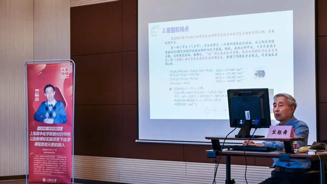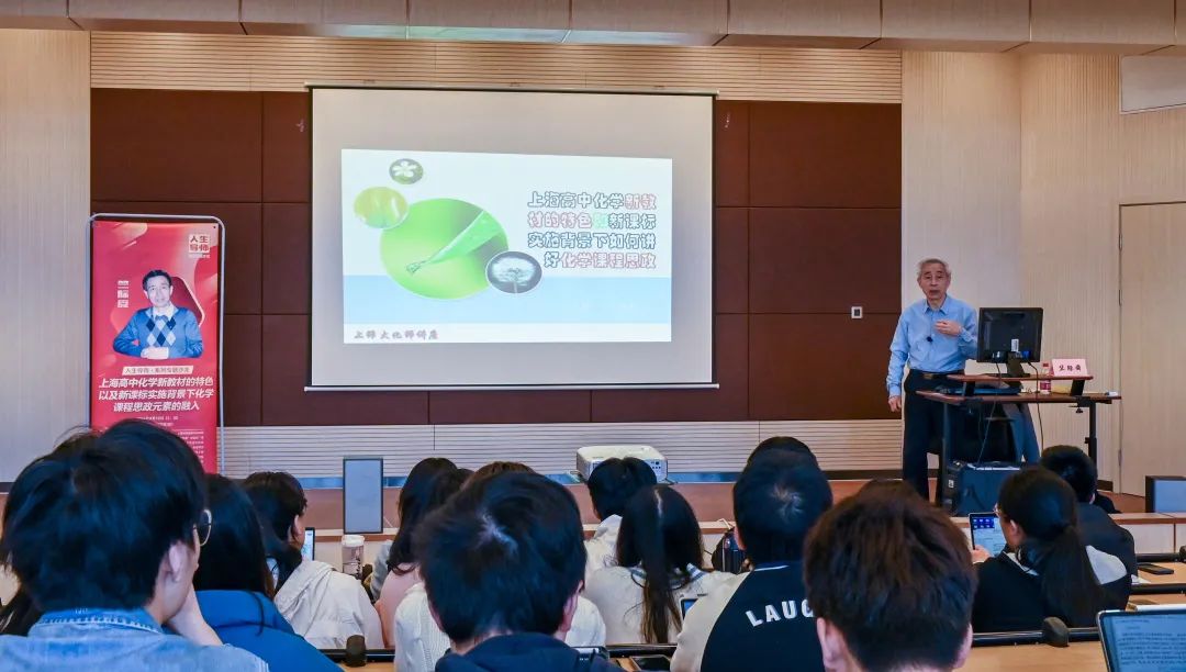 竺老师先向同学们展示了上海高中化学所用的教材版本,分享了自己编写教材的过程。通过详细讲解新教材的改动,图表的制作、化学反应的颜色、元素符号的正确书写等,充分展现了作为一名化学教育工作者严谨的科学态度以及真诚的教育态度。竺老师强调了教材必须精雕细琢,作为师范生,同学们要珍惜在校学习时间积淀专业知识,在教育实习中磨砺教学技能,多多参加专业比赛,多方位加强专业素养的培养。