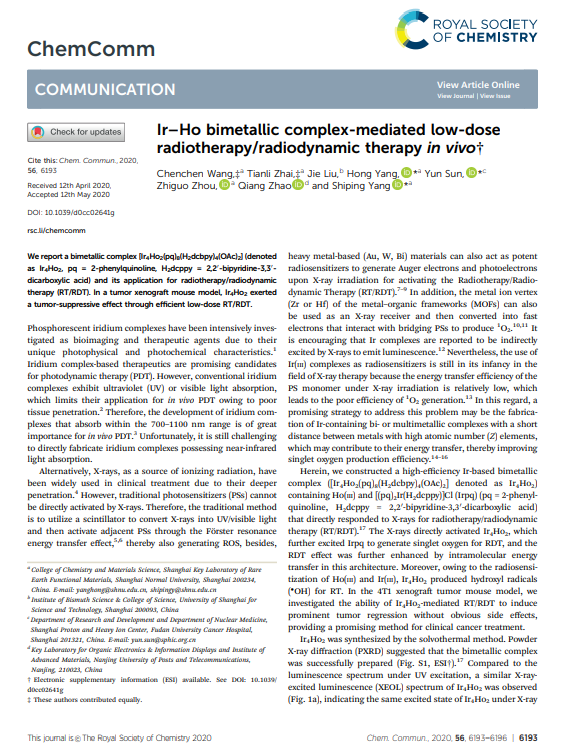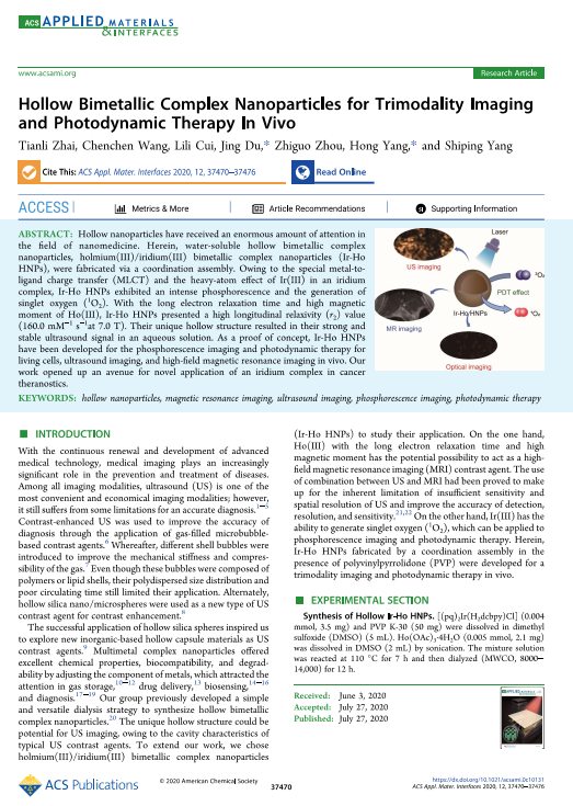 翟田莉同学深知科研没有捷径,唯有勤学苦思方能有所收获。进入研究生阶段后,她便勤奋努力,不断进步。她也迷茫过,彷徨过,一次又一次实验的失败让她不知所措,但她没有放弃,而是积极查阅文献,向师兄师姐请教,及时和导师讨论交流。导师的一句话让她至今记忆尤深:“只要思想不滑坡,方法总比困难多”。翟田莉同学说,正是因为杨老师不厌其烦的鼓励与指导,才使她有勇气在科研这条路上坚定地走下去。读研是一场修身又修心的旅途,可能会荆棘满布,但只要找到自己前行的方向,有一颗不断向前奋进的心,就一定会有所收获。这三年里,她的努力也终于得到了回报,她以第一作者在SCI一区TOP杂志ACS Applied Materials & Interfaces上发表论文一篇;以共同第一作者在SCI二区TOP杂志Chemical Communications发表内封面论文一篇,另有两篇学术论文正在修改投稿中。