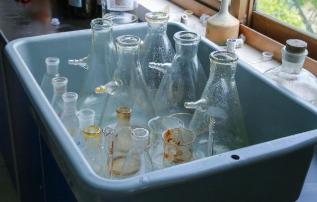 它们被小心翼翼地捧到实验室的水龙头下,一点一点、从里到外地反复清洗。没过多久,它们又恢复了崭新的外表,清透的玻璃在阳光的照耀下闪闪发光,像是在对热心的花菜们报以感谢。