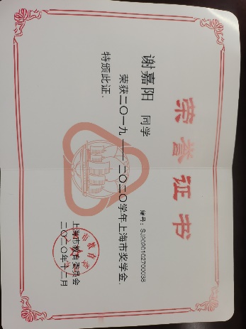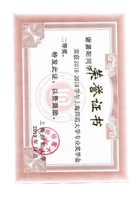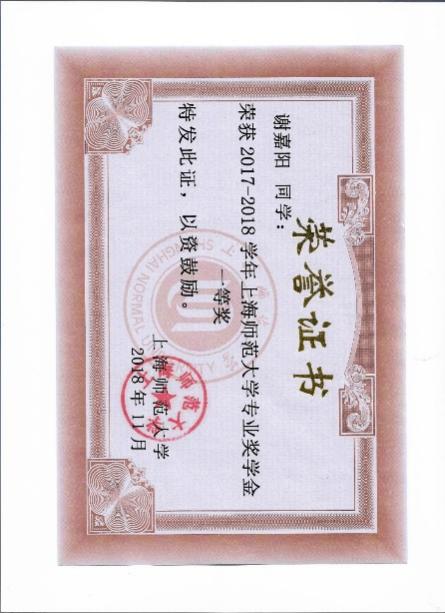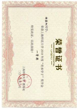 上海师范大学2018年度“世承学子”奖学金一等奖