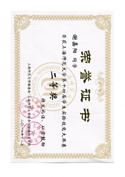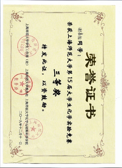 上海师范大学第十五届大学生化学实验竞赛三等奖