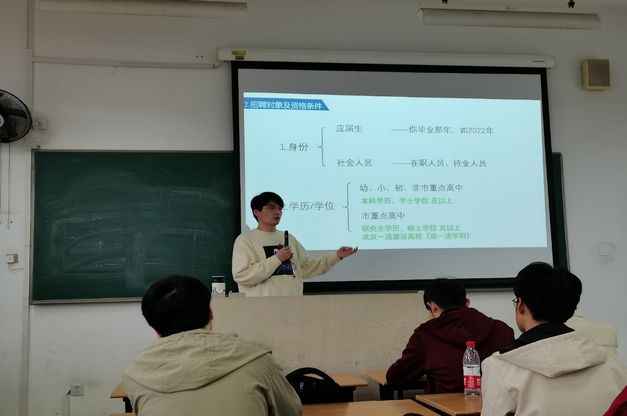 不仅如此,他希望自己的经验与经历能给学弟学妹们一些积极引导和帮助,主动为学弟学妹们开设教资面试和就业讲座,帮助学弟学妹们更好的开展生涯规划,明确人生目标。