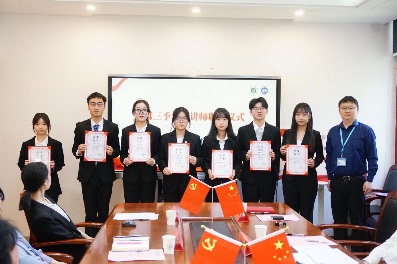 学院精心选拔15位以发展对象、入党积极分子和师范生为主体的优秀学生组成第三季学生讲师团。校教务处副处长王龚为学生讲师颁发聘书,鼓励同学们担当起“课程思政学生讲师”的身份,饱含热情地投入活动。