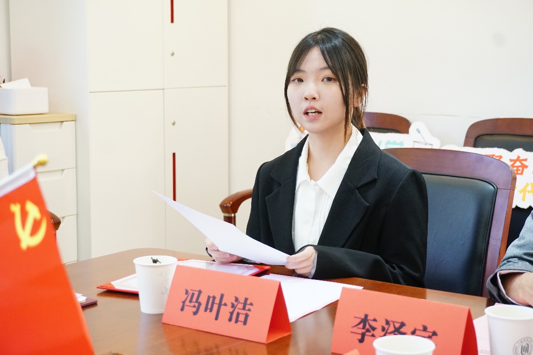 第三季学生讲师代表冯叶洁同学发言,讲述了自己与“学生讲课程思政”活动的结缘过程,表示将把课程思政元素融入专业知识传授给更多学生。