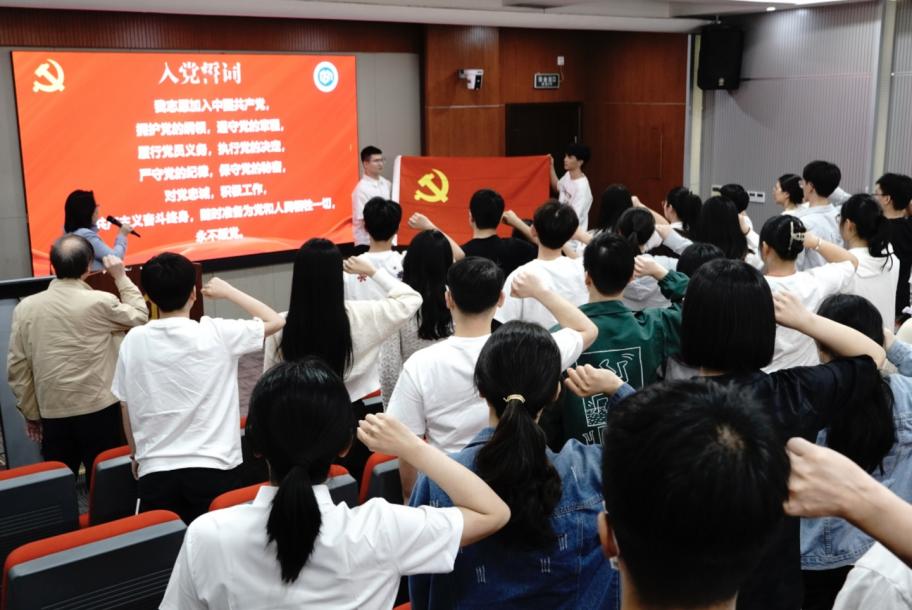 随后,在臧艳雯同志领誓、学院特邀党建组织员黄杉生老师的监誓下,举行重温入党誓词仪式。黄杉生老师叮咛毕业生党员要坚持共产主义信仰不动摇,立报国之志,遇到困难和挫折不放弃、不逃避,积极作为,不断奋斗,为实现中华民族伟大复兴贡献自己的力量。