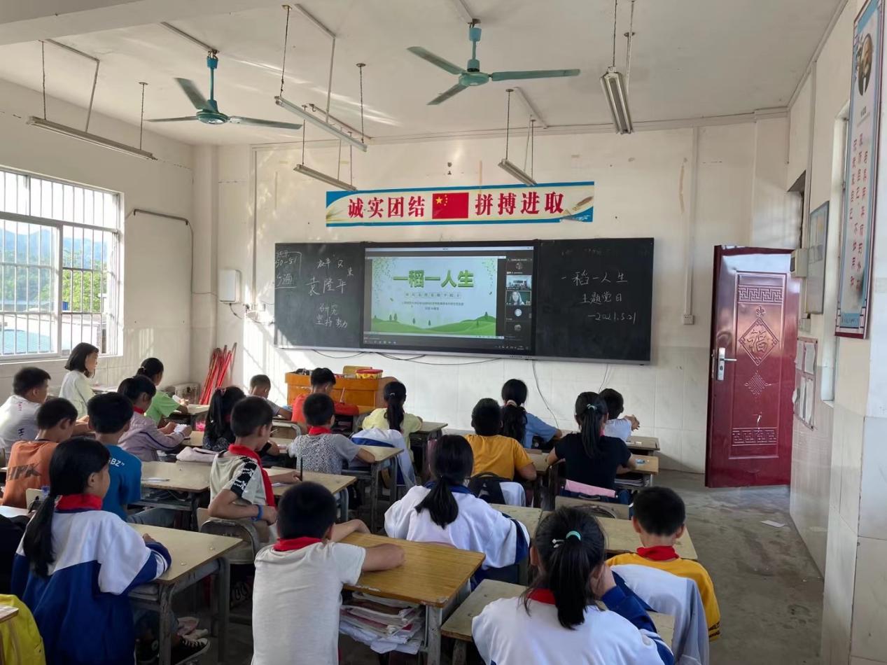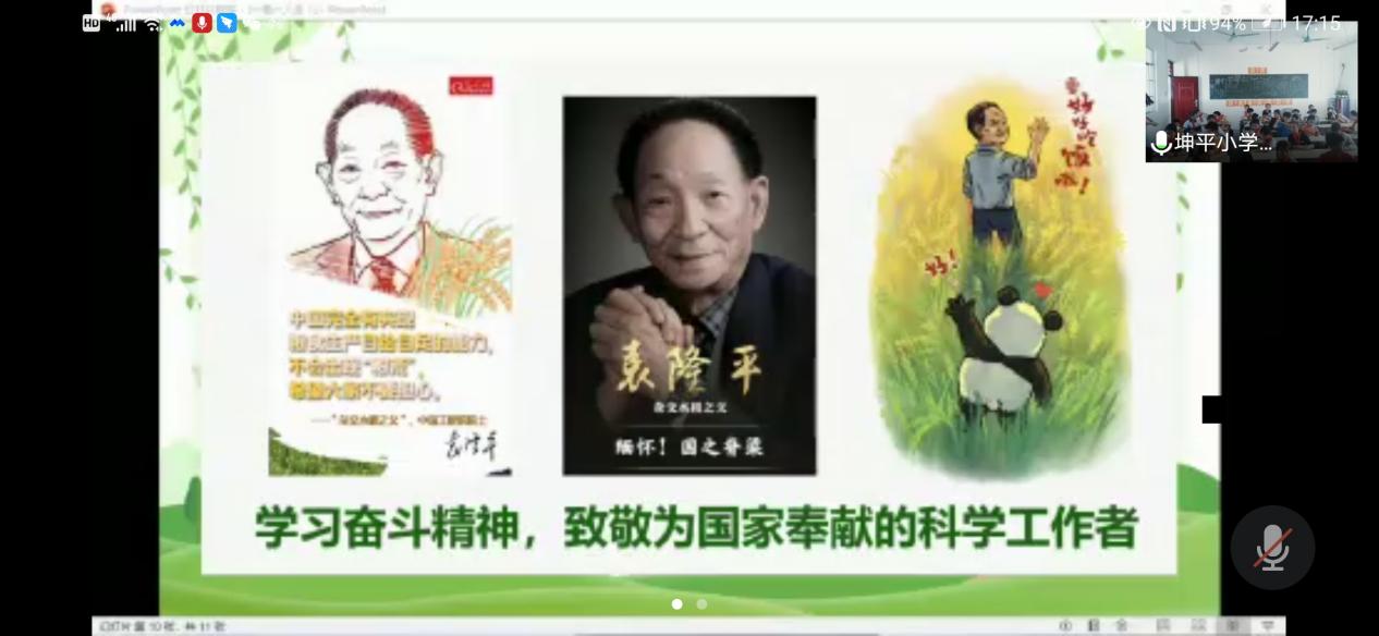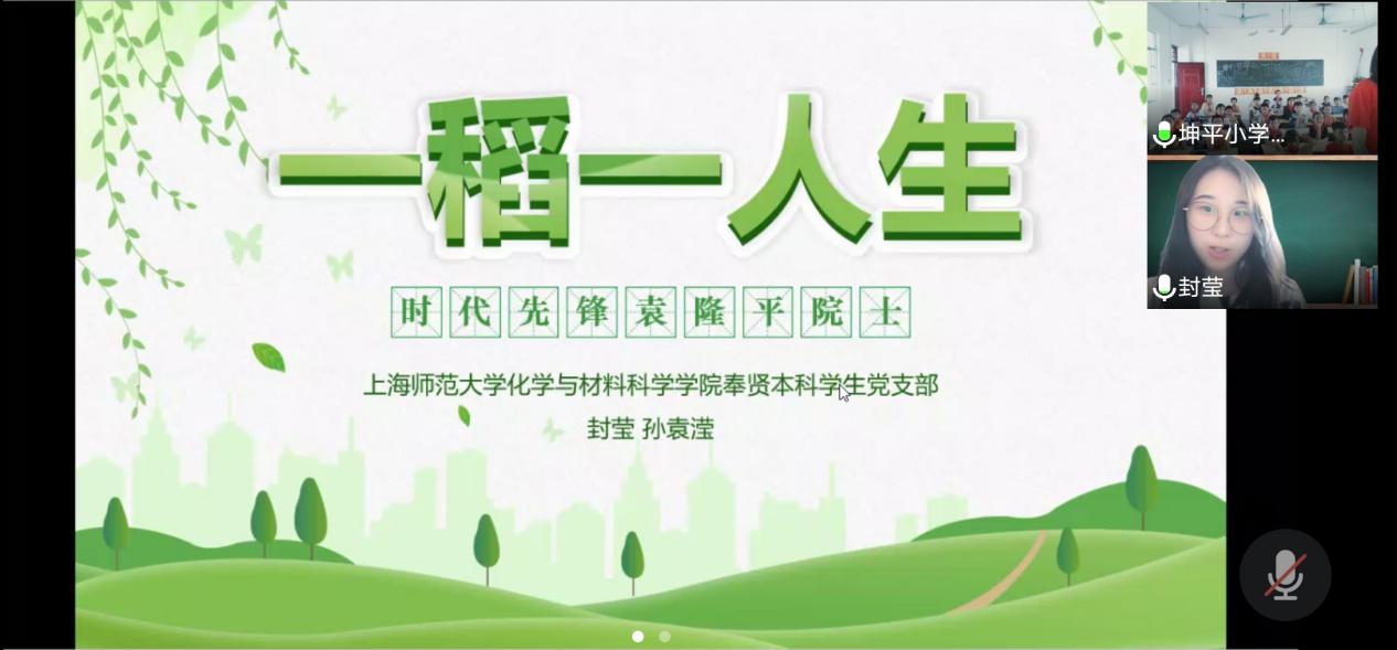 在六一儿童节到来之际,米粒av 奉贤本科学生党支部与师大支教学校广西壮族自治区百色市田阳区玉凤镇坤平小学联动,开展“红领巾心向党——学党史、强信念、跟党走”主题活动。5月27日下午,米粒av 奉贤本科学生党支部通过视频连线的方式为坤平小学五年级的同学们上了一堂“一稻一人生”主题云党课,支部学生党员、2018级化学(师范)专业封莹同学作为主讲老师为同学们讲述时代先锋袁隆平院士的故事。