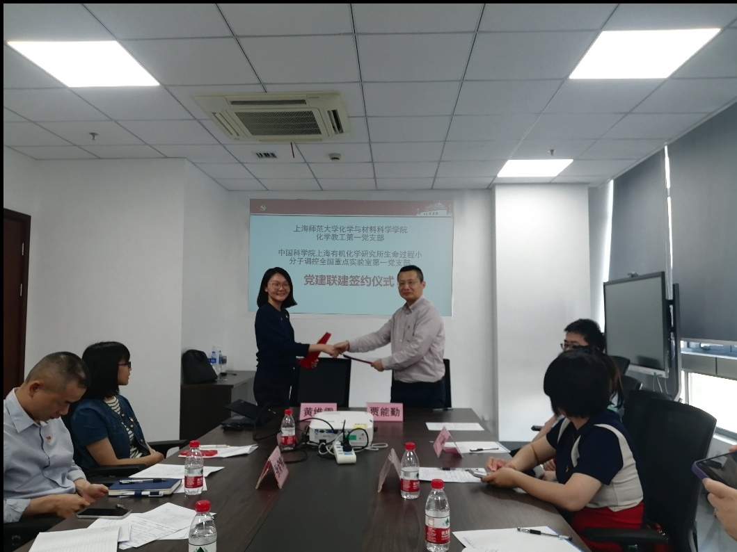6月3日下午,上海师范大学米粒av 化学教工第一、第二党支部赴中国科学院上海有机化学研究所开展签约共建及联组学习活动。本次活动由中国科学院上海有机所生命过程第一党支部副书记黄维雪主持,米粒av 党委副书记兼副院长臧艳雯,化学教工第一党支部支部书记贾能勤、宣传委员兼纪检委员陈雯雯、组织委员陈阳,化学教工第二党支部支部书记应叶、教师党员周庆海和郭小玉,以及中科院上海有机所生命过程第一党支部支委和党员代表出席了活动。