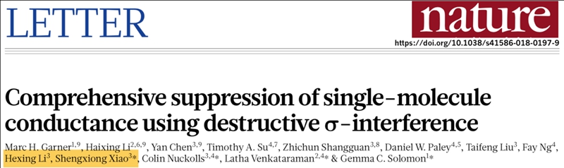 丹麦哥本哈根大学博士生Marc Garner、美国哥伦比亚大学博士生Haixing Li以及上海师范大学硕士生陈艳同学为论文的共同第一作者,上海师范大学肖胜雄教授、美国哥伦比亚大学Colin Nuckolls 教授、美国哥伦比亚大学 Latha Venkataraman 教授、以及丹麦哥本哈根大学Gemma Solomon 教授为论文共同通讯作者。