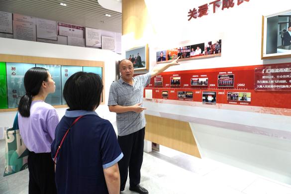 沙龙开始前,毛东海老师带领师生参观了久隆模范美丽的校园,介绍了学校的办学历史和概况。校史馆中,每一幅珍贵的历史照片都生动地再现了久隆模范中学的成长轨迹。毛老师还特别介绍了学校独特的教育模式和丰硕的教育成果,从2001年学校创办之初的艰辛与不易,到如今成为一所备受瞩目的公办区重点中学,始终秉承“让每一个学生成为模范公民”的办学理念,致力于为学生提供优质的素质教育。学校不仅关注学生的学业成绩,更重视学生的品德教育和全面发展,通过丰富多彩的课外活动和社会实践,学校培养了一批批品学兼优、德才兼备的优秀学生。