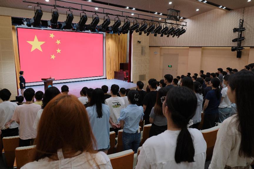 典礼最后,由贾能勤老师作为教师代表宣读“弘扬科学家精神、恪守学术道德”倡议书。新征程上,全面建设科技强国,推动实现高水平科技自立自强,必须大力弘扬科学家精神。新时代的研究生肩负着继承与发展科学事业的重任,贾老师呼吁同学们要树立远大理想,勇攀科技高峰;坚持求真务实,恪守科学道德;勇于创新创造,引领未来发展;强化社会责任,服务国家人民。