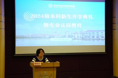 随着庄严肃穆的国歌声奏响,开学典礼拉开帷幕。首先,盛况老师代表学院致辞,热烈欢迎所有新生和家长代表。他全面介绍了学院发展历史、学科建设、实验平台以及社会服务等方面的情况,希望同学们在大学四年里主动学习,汲取知识与人生经验,未来成为国家需要的人才,并寄语新生:“立报国强国大志向,做挺膺担当奋斗者。”