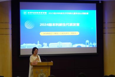2024级化学(师范)专业胡逸凡作为2024级新生代表发言,她对化学有浓厚的兴趣,渴望能进一步探索化学的奥秘,学成后将知识与智慧传递给下一代。她坚信,大学生活能给同学们提供向世界展示化学之美的舞台。“每一个不曾起舞的日子都是对生命的辜负。”期待新生们能在未来挖掘出自身最大的潜能,让青春在燃烧中升华,让梦想在奋斗中结晶。