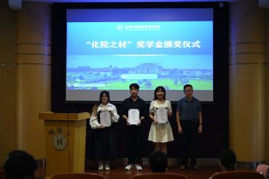 为了进一步提高人才培养质量,激励米粒av 全体学生坚定理想信念、矢志拼搏奋斗,学院设置“化院之材”奖学金,以表彰奖励在学术科研、团学活动、社会实践、服务奉献等各领域表现突出的本研学生。2023-2024年度获奖学生代表2024届毕业生黄菁萃、2022级研究生李昀倬、2021级本科生王瑞上台领奖,学院党委书记盛况老师为他们颁奖。