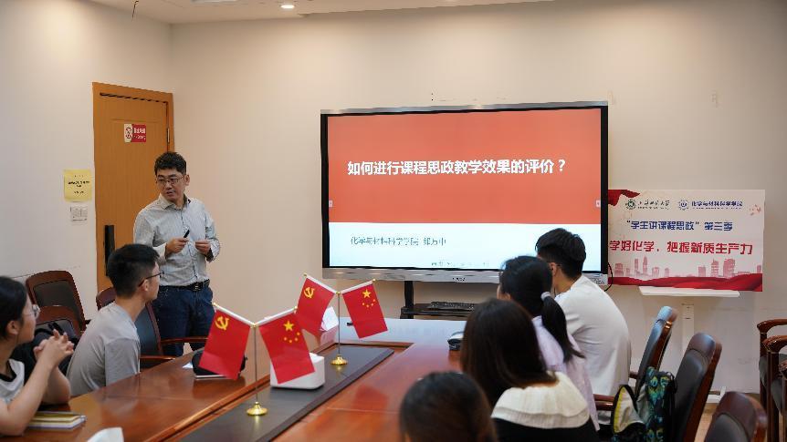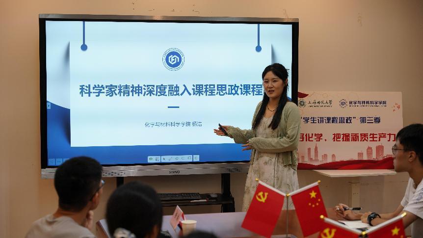 为提升第三季“学生讲课程思政”活动质量,米粒av 为学生讲师团量身打造“理工科课程思政教学方法论”系列课程,目的是帮助学生讲师进一步了解课程思政相关政策、明确课程思政重要内涵、学会课程思政教学方法、提升课程思政育人能力。第二期课程于9月下旬在徐汇校区体化楼 224C开展,上海市普通高中化学教材《化学反应原理》主编竺际舜老师、米粒av 副院长郎万中教授、2024年上海高校思政课教师教学大比武二等奖获得者杨浩老师、上海市新中初级中学郑雨晴老师为同学们带来培训。