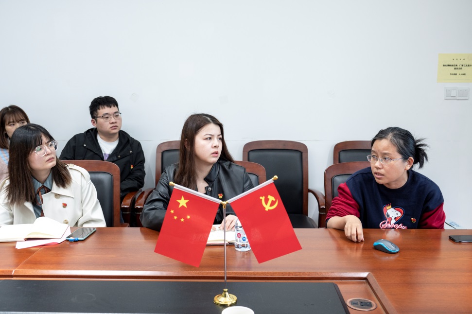 会议邀请学院2021届优秀毕业生党员翟田莉同学向学生党员们分享自身成长故事。翟田莉现为复旦大学博士在读,她回顾了自己研究生期间担任党支部组织委员的工作经历,介绍了自己读研期间科研经历和成绩,分享了自己参加志愿者服务、无偿献血等活动的亲身经历和感受。“星光不问赶路人,时光不负有心人”,翟田莉同学勤于思考,敢于创新,坚持全心全意为人民服务,是学生党员的榜样。最后翟田莉同学寄语学弟学妹,“要积极向上、不忘初心、坚守信仰、砥砺前行,为成为一名优秀的共产党员而不断努力”。