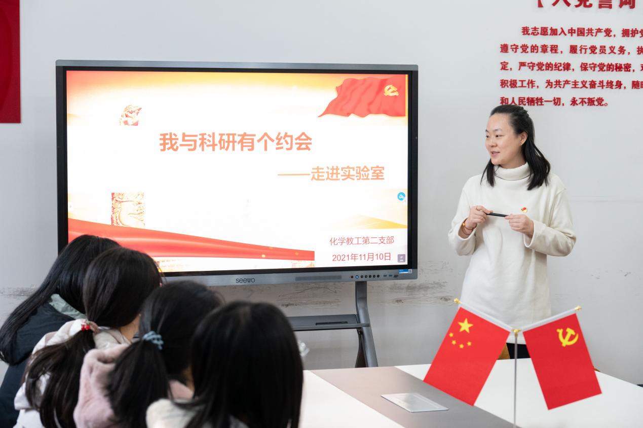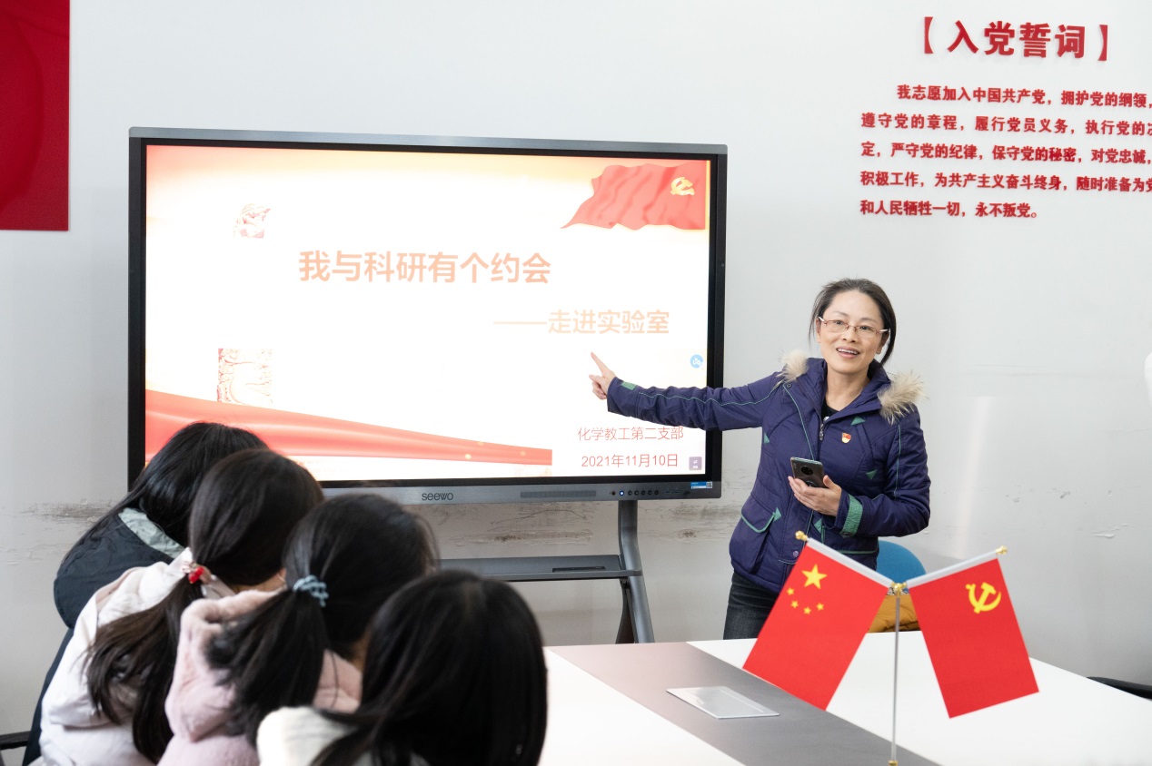 2021年11月10日下午,米粒av 化学教工第二党支部“我与科研有个约会——走进实验室”活动在徐汇校区分析化学硕士点实验室顺利举行。化学教工第二党支部10余位专业教师和分析化学硕士研究生,为参与活动的40余名同学们进行了生动的现场讲解和演示。