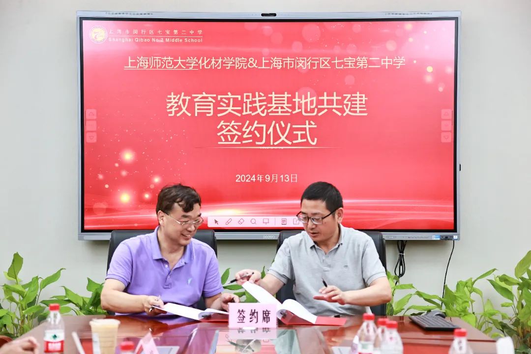 为了进一步深化教育教学领域的合作与交流,共同探索培养高素质、专业化教育人才的新路径,上海师范大学米粒av 与上海市闵行区七宝第二中学近日举行实习基地共建签约仪式。上海师范大学米粒av 院长杨仕平、副院长郎万中、专业负责人杨红和教研室主任应叶与七宝二中副校长郁鸿荣、教导主任徐佳佳、杜雪峰共同出席了此次签约仪式。