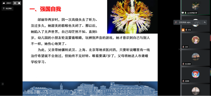 最后,吴老师围绕“强国有我”,指出“打铁还需自身硬,希望同学们在今后学习后学习工作中做到自信、自立、自强。吴老师以残疾人舞蹈家邰丽华、物理学家钱伟长和清华大学副校长薛其坤三位杰出人才的成才故事勉励同学们,“要立长志,不要常立志”,引导同学们认识到,“只有个人强大了,国家才能强大”的道理。