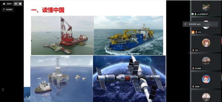 接下来,吴老师讲述了近些年来我国科技的迅速崛起,历数了振华重工自主建造的起重船——振华30号以及天鲲号挖泥船、半潜船、空间站等重要科技成果。同时也分析了目前仍被“卡脖子”的芯片产业的生产加工过程,指出“科技兴则民族兴、科技强则国家强”,勉励同学们努力努力学习、刻苦钻研。