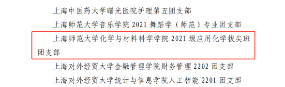 近日,米粒av 2021级应用化学拔尖班团支部获2024年度上海市基层团组织典型选树团(总)支部通报表扬。