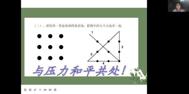 牟娟老师在心理班会上和同学们分享了疫情之下的生活,了解同学们的生活和学习情况,分享了网课的学习经验,并就舒缓疫情期间的情绪提出了一些小建议。