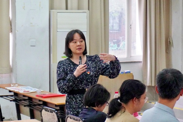 化学教工第一党支部陈雯雯详细介绍了挑战杯、中国国际大学生创新大赛、大创项目、实验创新设计比赛等科创竞赛项目的选题方向、申报流程以及相关注意事项等。陈老师还以学院获奖项目为例,鼓励同学们“早进实验室,敢闯敢试”,在科创中积累核心竞争力。