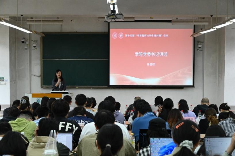 为深入贯彻落实立德树人根本任务,积极构建“三全育人”格局,营造学院浓厚育人氛围,5月28日下午,米粒av 在奉贤校区举办第十四届“党员教师与学生面对面”活动。学院党委书记、教师党支部书记带队,各教师党支部21位党员教师以及5名优秀毕业生代表聚焦学业发展、科研创新、就业考研等主题与本科低年级学生深度对话,赋能学生成长成才。活动由2023级本科生辅导员宁恬恬主持。