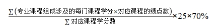 专业课程综合成绩为专业课程的加权平均分乘以70%,公式为: