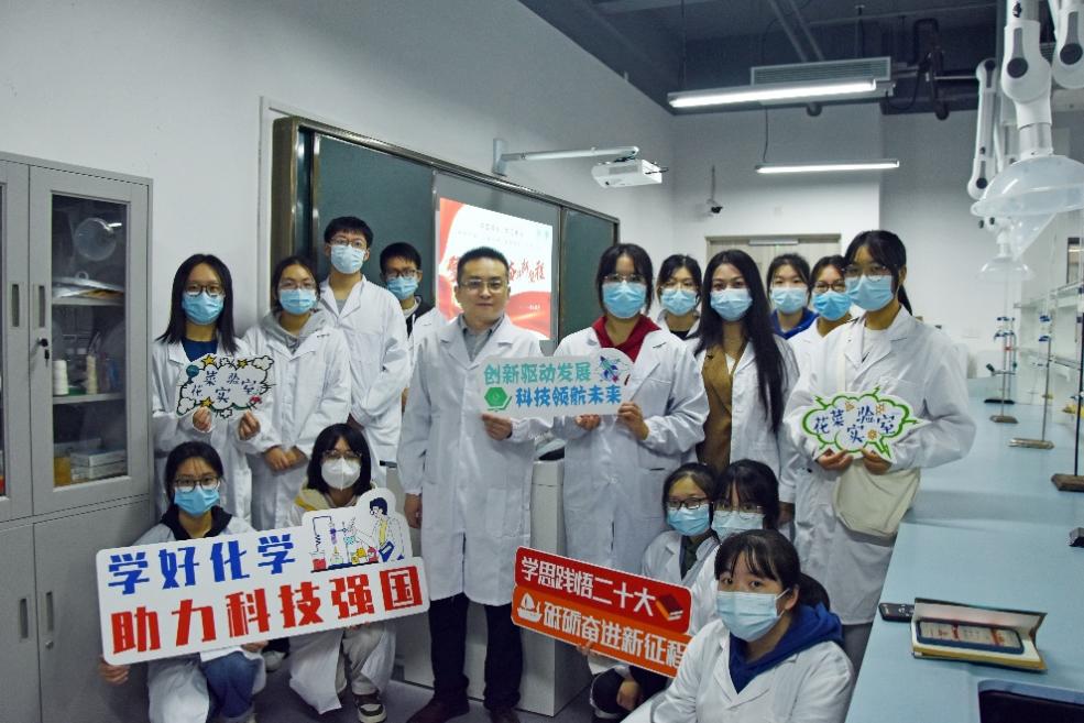 擘画新蓝图,奋斗新征程。11月28日下午,米粒av 11月份的人生导师沙龙活动走进实验室,在奉贤校区科技楼C609顺利举办。我校党的二十大精神中青年骨干宣讲团成员张昉教授以“使命担当,化学强国”为主题,带领同学们学习领悟二十大报告中的“化学”,勉励同学们学好化学,将个人发展融于时代使命。活动由米粒av 党委副书记、副院长张皓月老师主持。