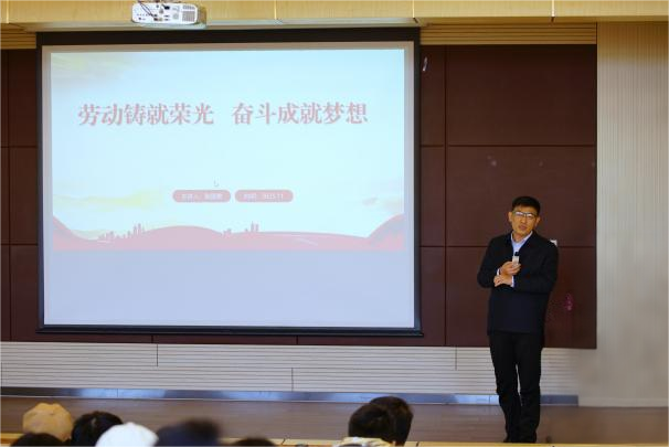 讲座中,张国勇以 “劳动铸就荣光,奋斗成就梦想” 为主题,结合自身成长经历与行业实践,展开了真挚而深刻的分享。他从乡村成长背景切入,回忆起童年时期因教育条件有限,6年小学辗转4所学校的艰辛岁月。正是这段艰苦生活,磨砺出他坚韧不拔的意志品质。在父母 “读书改变命运” 的谆谆教诲下,凭借自身的不懈努力,他于1995年成功考入南京工业大学化学工程专业,成为村里首位本科生。而化学老师对专业的生动讲解,更在他心中种下了深耕化工领域的种子,坚定了他投身这一行业的职业信念。他的励志成长故事,引发了在场学子对人生选择与职业规划的深度思考。
