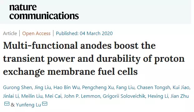 日前,米粒av 朱建教授开展《多功能复合阳极提高质子交换膜燃料电池瞬时功率和耐久性》的研究工作,最新成果发表于Nature子刊Nature Communications。
