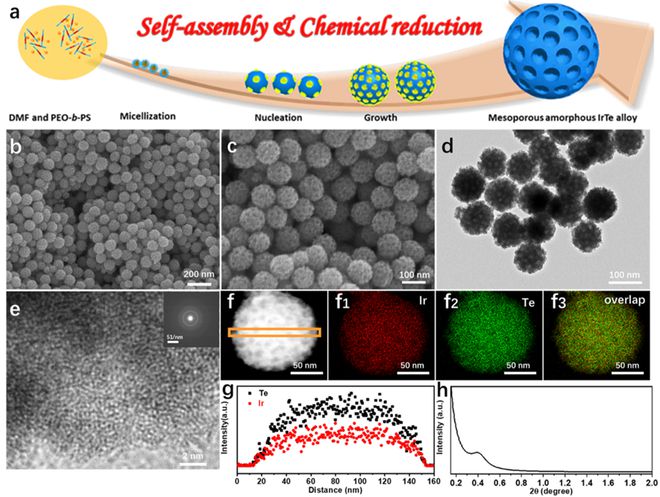 图1介孔非晶态IrTe合金的合成示意图及其表征