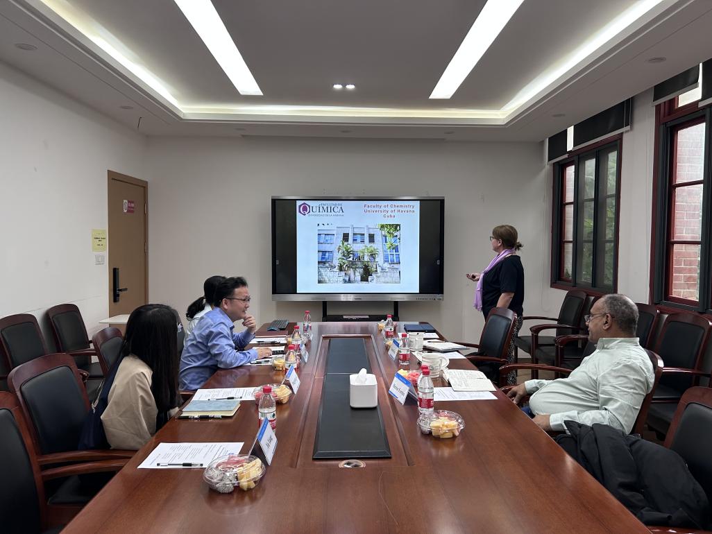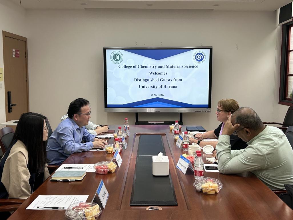 2023年5月18日上午,米粒av 肖胜雄副院长、徐京京副教授、李盼盼副教授以及外事助理杨宇在体化楼224C会议室接待了来自古巴哈瓦那大学的法务主任Dr. Hector Ferran和化学学院科研副院长Dr. Yoana Perez。双方就科研合作及学生交流等方面展开了讨论,希望开启交流合作的大门。