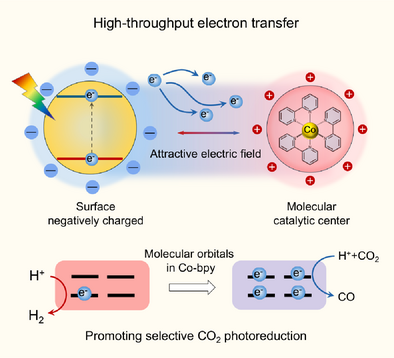 近日,米粒av 蒋波教授与上海交通大学/华中农业大学合作,在《Angewandte Chemie International Edition》上发表了题为“High-Throughput Electron Transfer in Inorganic–Organic Interfacial Electric Field Enabling Selective CO2 Photoreduction”的研究论文。